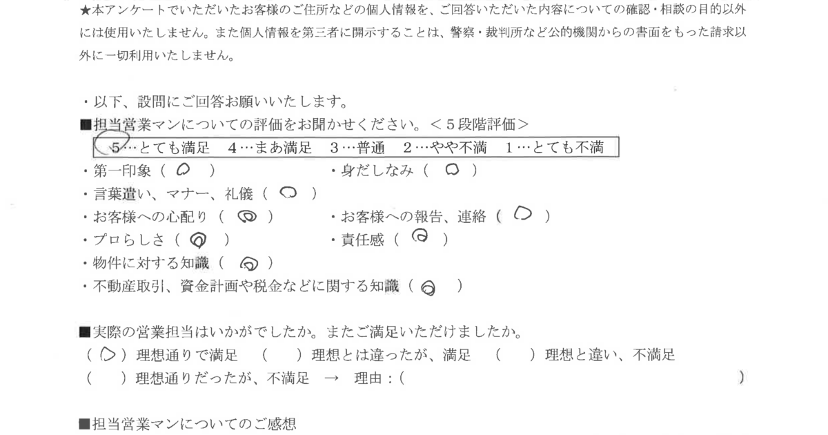 - 熱心でフットワークもよく、誠意が感じられた。お世話していただき、感謝しています。ありがとうございまし